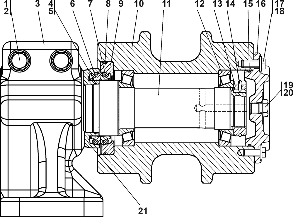 | 4 | Каток поддерживающий (состоит из узлов и деталей поз.4-21) | 2501-21-215СП(SP) | ||||